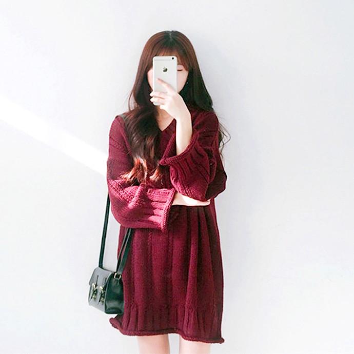 大きめサイズ かわいい Vネック ニット ワンピース ニットワンピース チュニック 韓国 送料無料 Sc0145 Shiawase Clothes 通販 Yahoo ショッピング